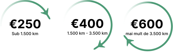 | Zboruri mai scurte de 1.500 km | Obțineți 250 € per pasager |